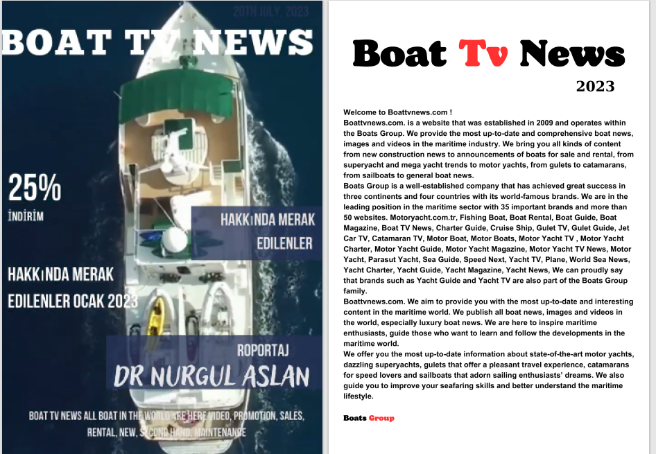 Boats Group, Yachts Group, Motor Yachts Group ve Sail Boats Group Markalarımızla, 70 Dijital Denizcilik Haber Portalımız Üzerinden İçeriklerinizi Küresel Bir Ağda Yayınlıyoruz.