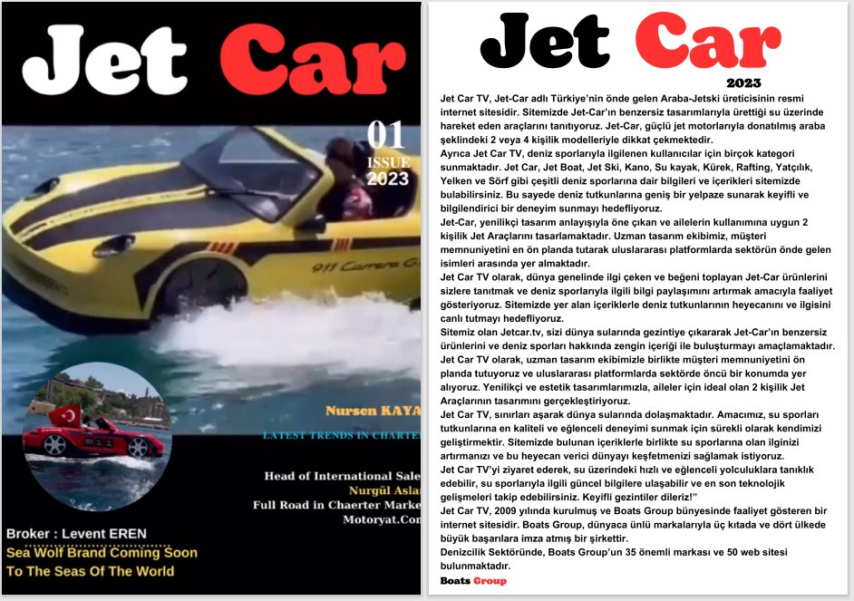 We broadcast your products and services to a wide audience through 19 local Turkish and 51 international English-language web platforms. Whether it’s rental and sale of boats, sailboats, motor yachts, catamarans, inflatable boats, or marine engines, we promote your offerings globally. Additionally, we amplify your news on boat and yacht materials with highly effective SEO-focused content.