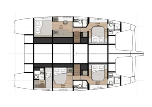 Bu zarif katamaran, 10 kişiye kadar misafir ağırlayabiliyor.