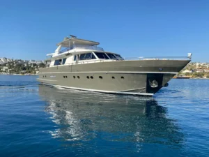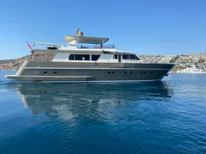 Bodrum çıkışlı bu 26 metrelik lüks motoryat, geniş yaşam alanları, profesyonel mürettebatı ve üstün donanımıyla size deniz üzerinde benzersiz bir tatil sunuyor. 10 kişiye kadar konaklama imkanı sunan yatımızda, konfor ve zarafet bir araya geliyor.